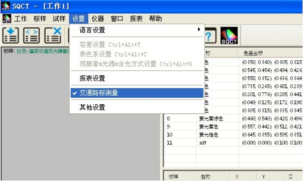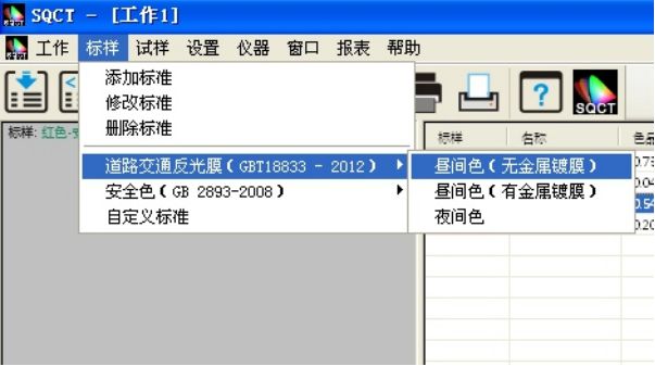 針對國內(nèi)交通路標使用較多的標準GB/T18833,SQCT軟件將該標準中的標準色域納入其中,客戶只需根據(jù)自己需要進行選擇即可。