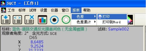 對試樣的測試結(jié)果可以通過打印菜單生成測試報表,選中要打印的試樣和標樣,執(zhí)行“報表->色差->打印/打印到word”或“報表->色差累計->打印/打印到word”,將測試結(jié)果打印出來,如圖15、16所示。