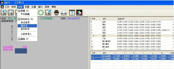 同時可以通過“試樣->重命名/刪除”對測試試樣進行重命名和刪除操作。