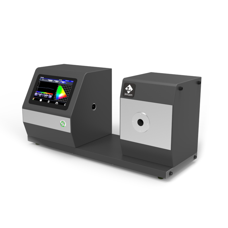 3nh YH1810水平數字透光率測試儀顏色霧度計 可以輕松實現ASTM D1003無補償法、ISO 13468補償法、全透光率、霧度測試、清晰度測試。配合精密凹面光柵和256像素CMOS探測器,可以準確地實現采集透射樣品的透過率曲線,準確輸出透射樣品的各種色度數據,實現透射率、霧度、色度數據的高精度、可重復測量。